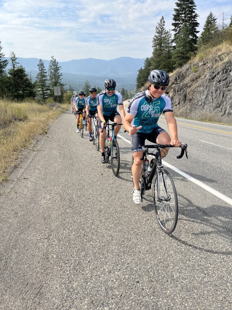 Each September, a team of 30 law enforcement officials pedal across South Eastern British Columbia to raise funds and awareness for local children in medical, physical, or traumatic crisis. Each rider must provide their own equipment, train on their own time, and fundraise a minimum of $2,500 in order to participate.